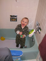 Then time for bubbles, for now with earplugs and a thermometer still on the belly from surgery